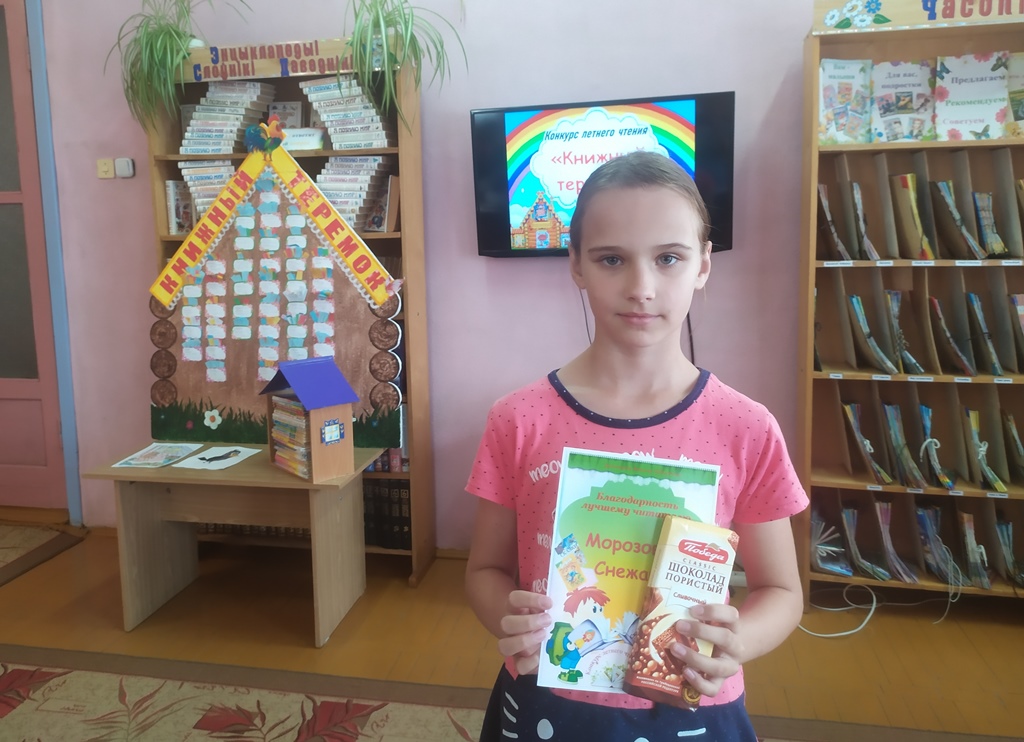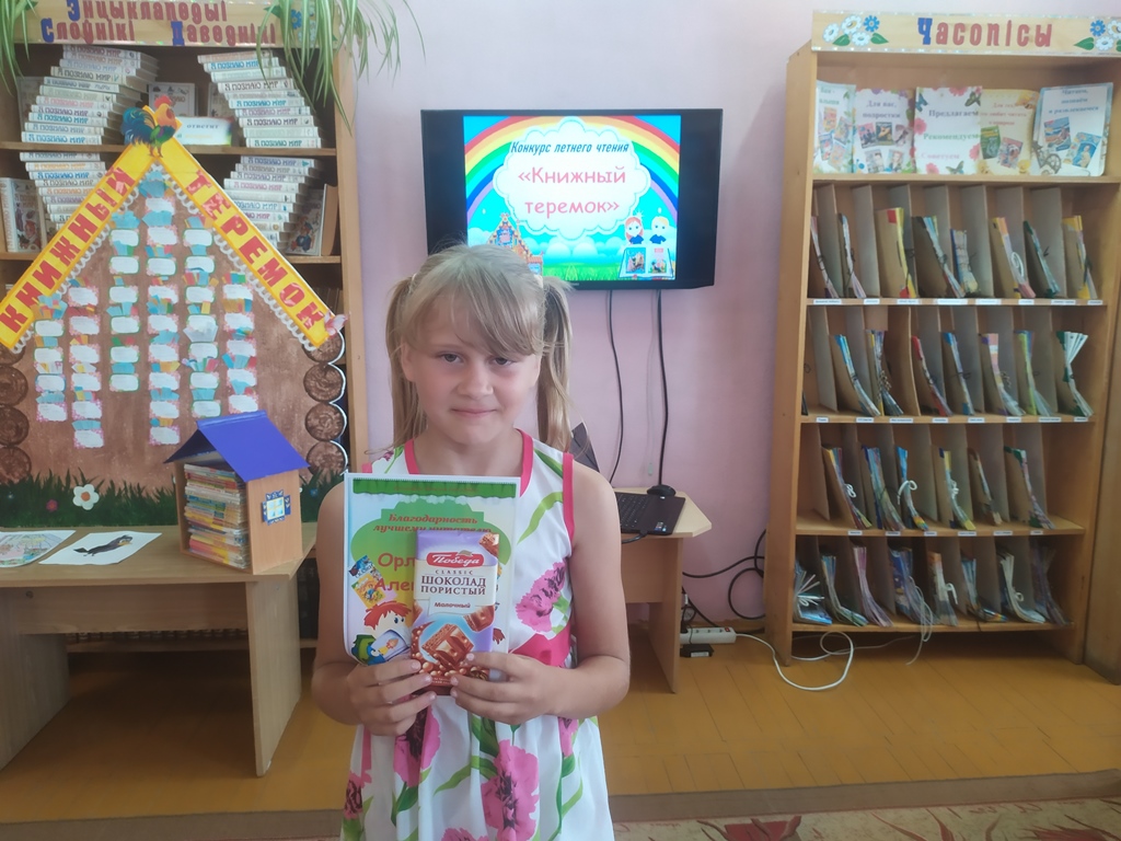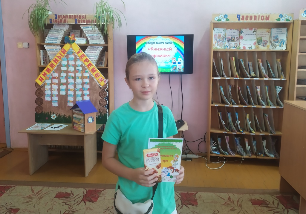 Последние дни августа… Конкурс подходит к концу, возле нашего экрана - книжного теремка заметное оживление, это участники конкурса заносят последние прочитанные книги. Все! Конкурс завершён! И вот уже определен абсолютный победитель конкурса летнего чтения «Книжный теремок»! Им стала Януш Екатерина, учащаяся 5 «В» ГУО «Средняя школа №2 г. Докшицы», которая прочла за лето 101 книгу.