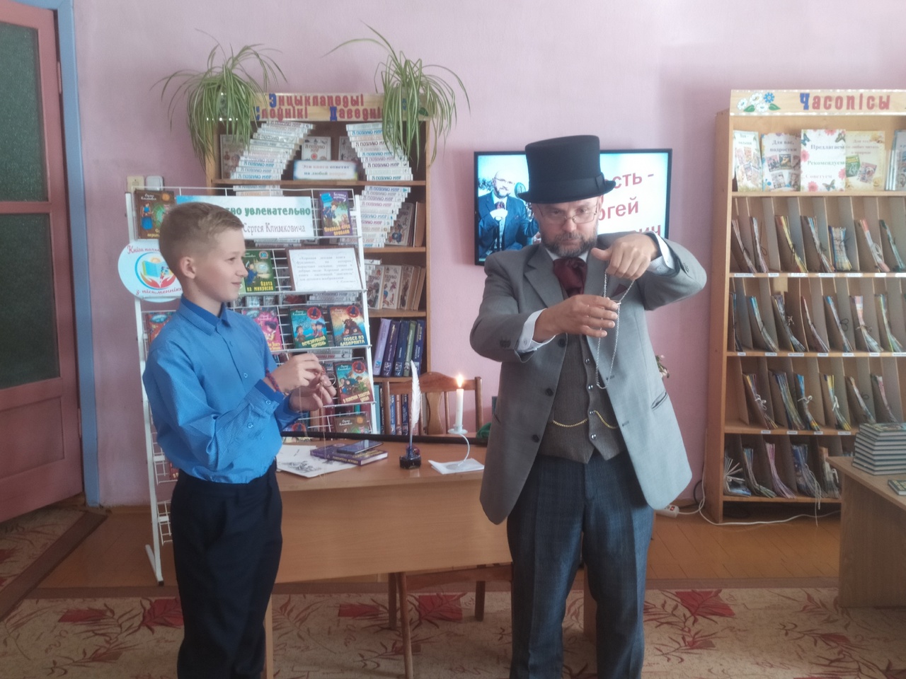 В конце встречи Сергей Климкович предложил читателям погрузиться в мир магии и волшебства. Дети были в восторге, с удовольствием сами учились показывать фокусы, получая от Сказочника магические кристаллы. Секреты некоторых фокусов писатель открывал, а самый загадочный так и остался нераскрытым. Наверное, Сергей Климкович раскроет его в следующий раз, ведь ребята приглашали его обязательно приехать еще раз в наш город.