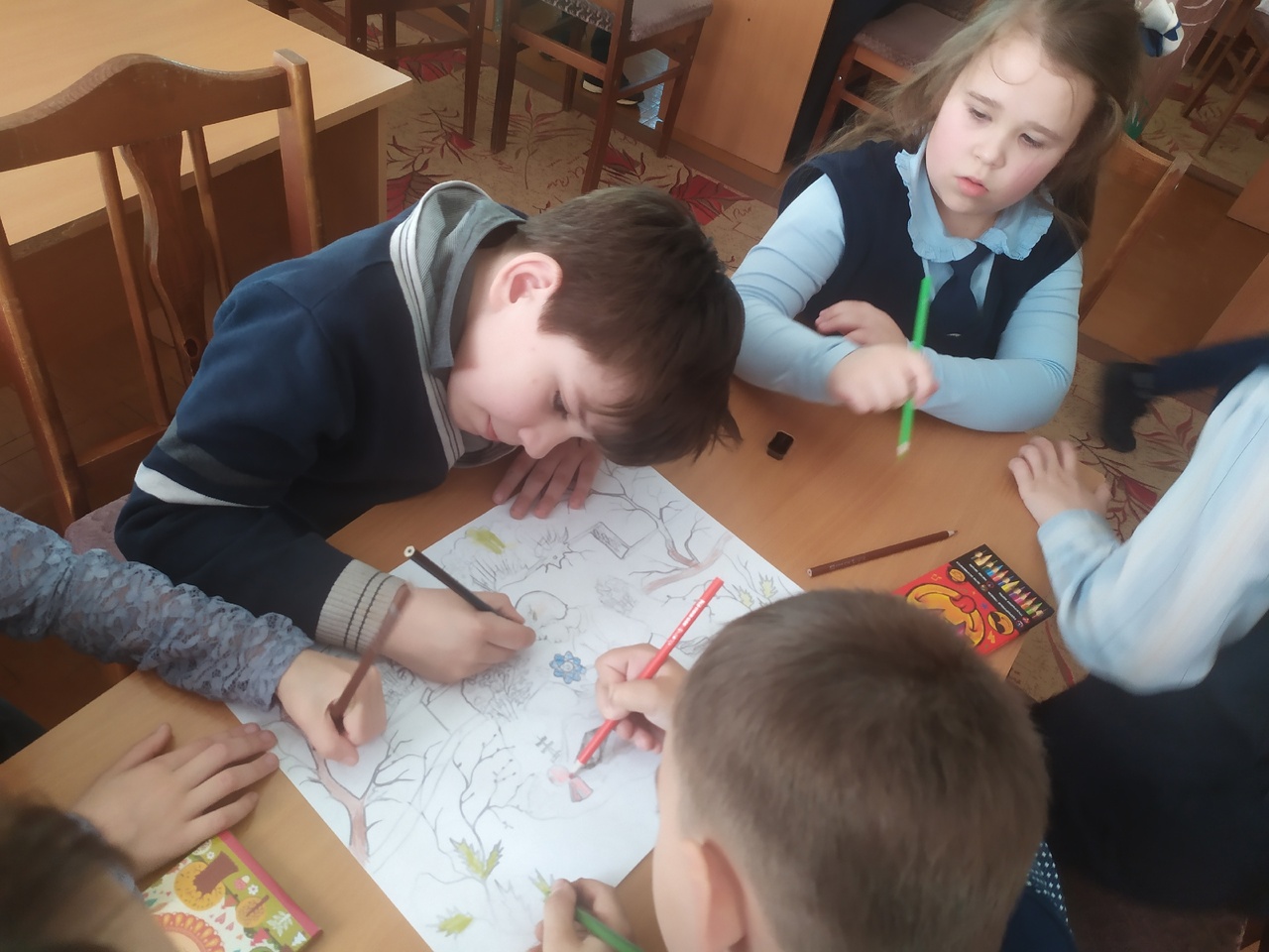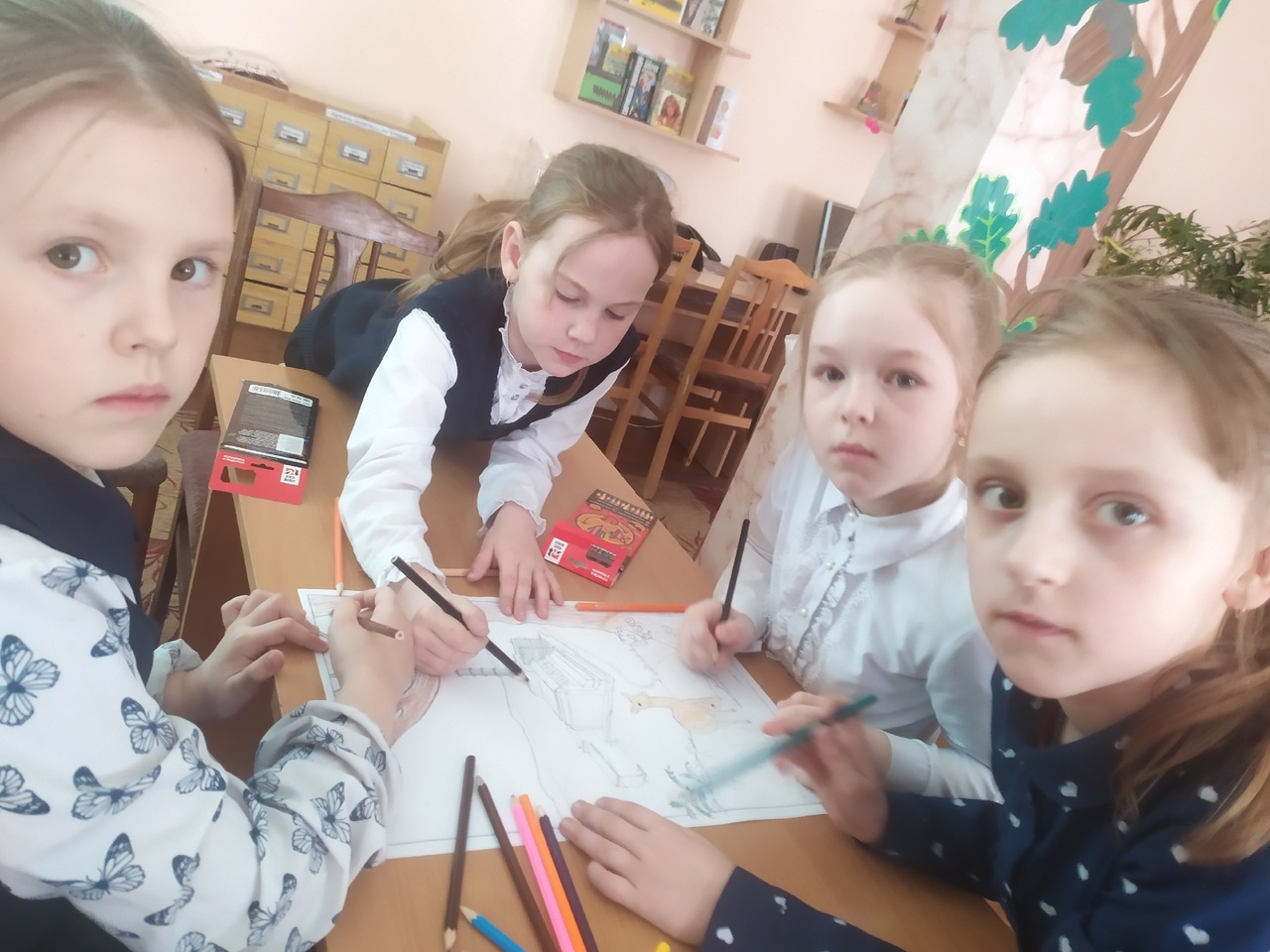 Читатели младшего школьного возраста в конце мероприятия сделали коллективный плакат «Мы за мирный атом».