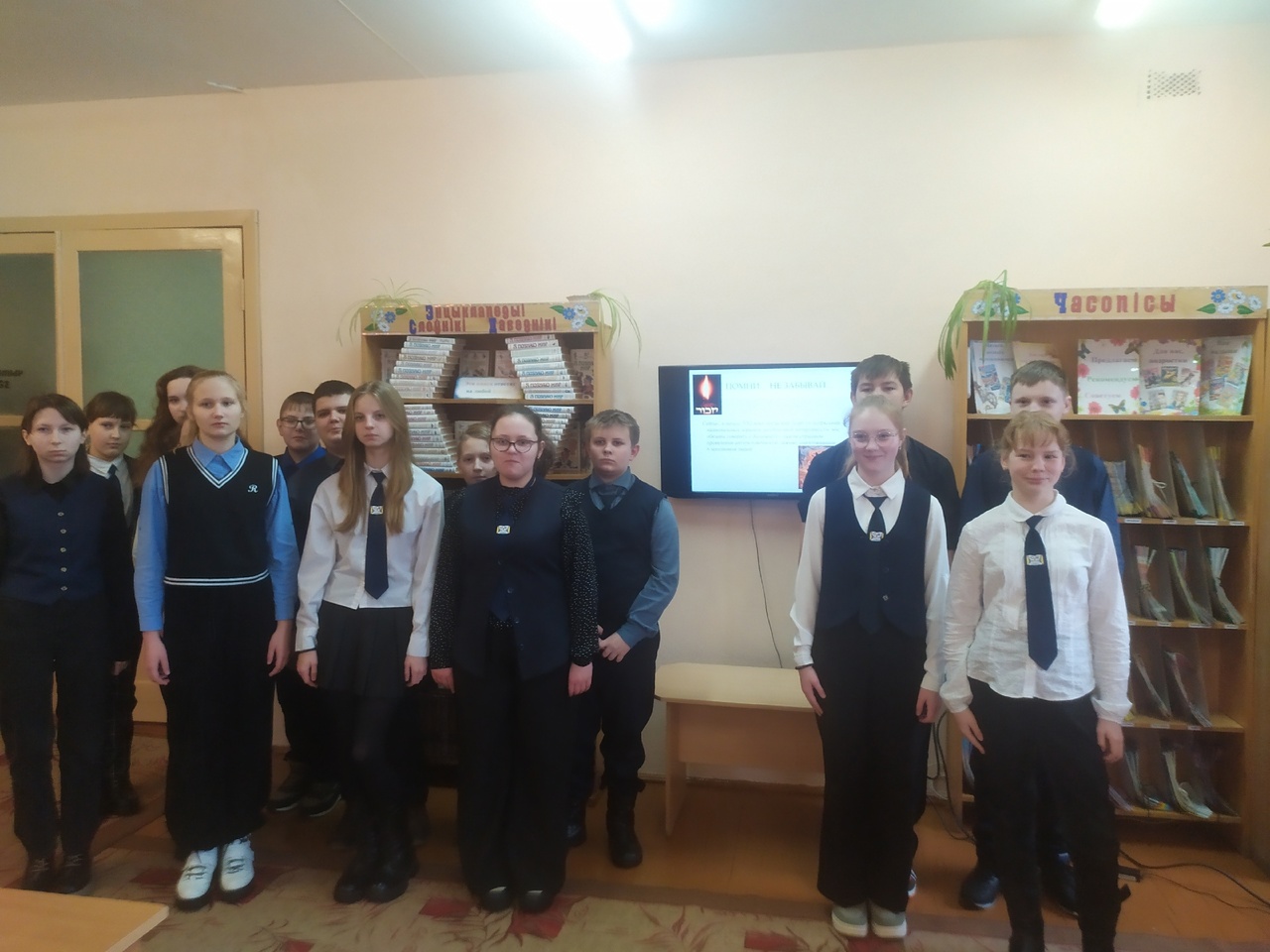 27 января – Международный день памяти жертв Холокоста. В этот день весь цивилизованный мир склоняет голову перед жертвами фашизма. К скорбной дате в нашей библиотеке состоялся час исторической памяти «Холокост: история, судьба, память», участниками которого стали ученики 7 «А» класса ГУО «Средняя школа №1 г. Докшицы»