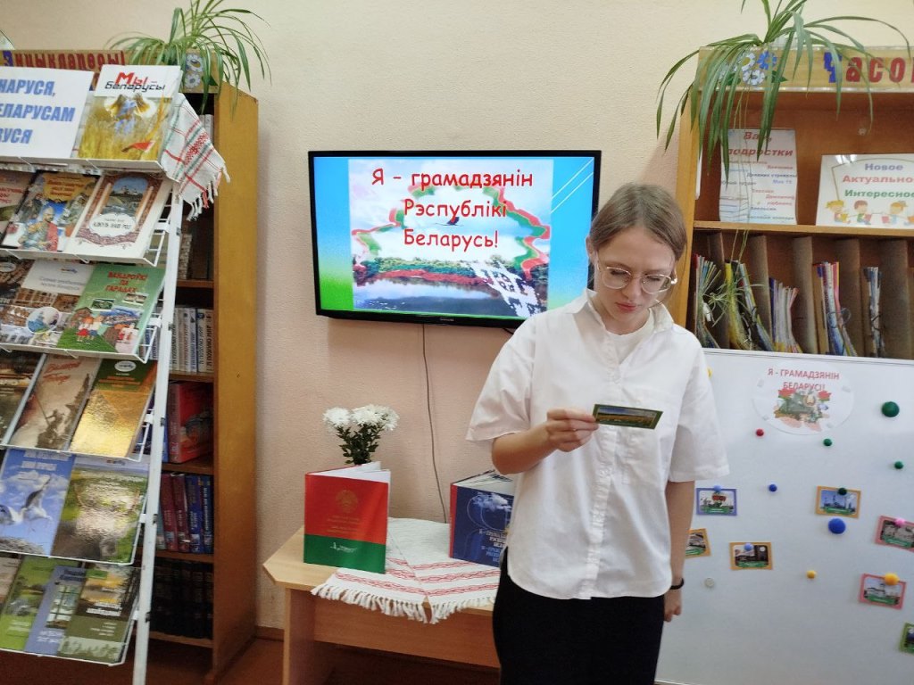 У дзіцячай бібліятэцы адбылася дыялогавая пляцоўка “Я – грамадзянін Беларусі”. Вядома, што нашы людзі – гэта самы вялікі скарб нашай краіны. Беларускі пісьменнік Уладзімір Караткевіч з павагай і любоўю сказаў пра наш народ: “Жывы, разумны, працавіты і вольналюбівы беларускі народ! Беларус адрозніваецца шчодрасцю, гатоўнасцю заўсёды прыйсці на дапамогу ў бядзе”.