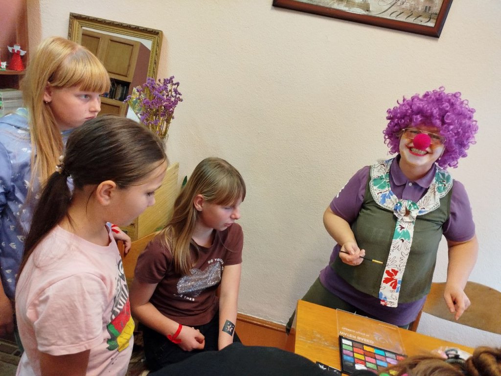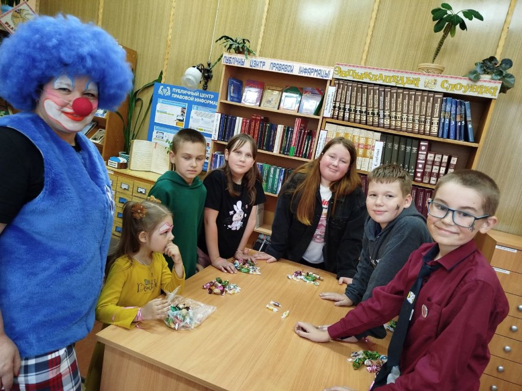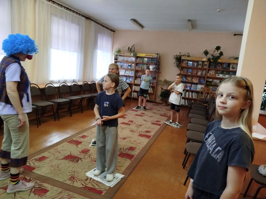 Библиотекари детской и центральной библиотеки, в этот раз выступившие в роли веселых клоунов, разделили ребят на команды и объявили о старте увлекательной игры. Участников ждали пять интересных станций: Поисковая, Гримерная, Игровая, Познавательная и Танцевальная. На каждой станции командам предстояло выполнить различные задания, за которые они получали яркие шарики.