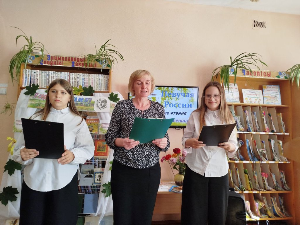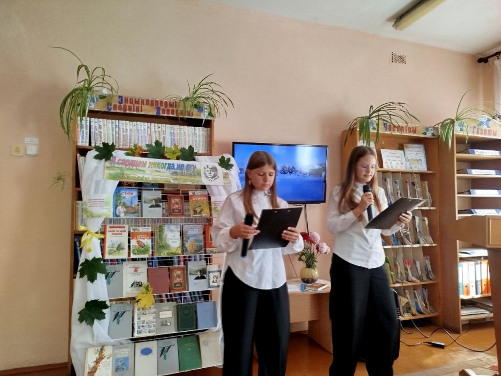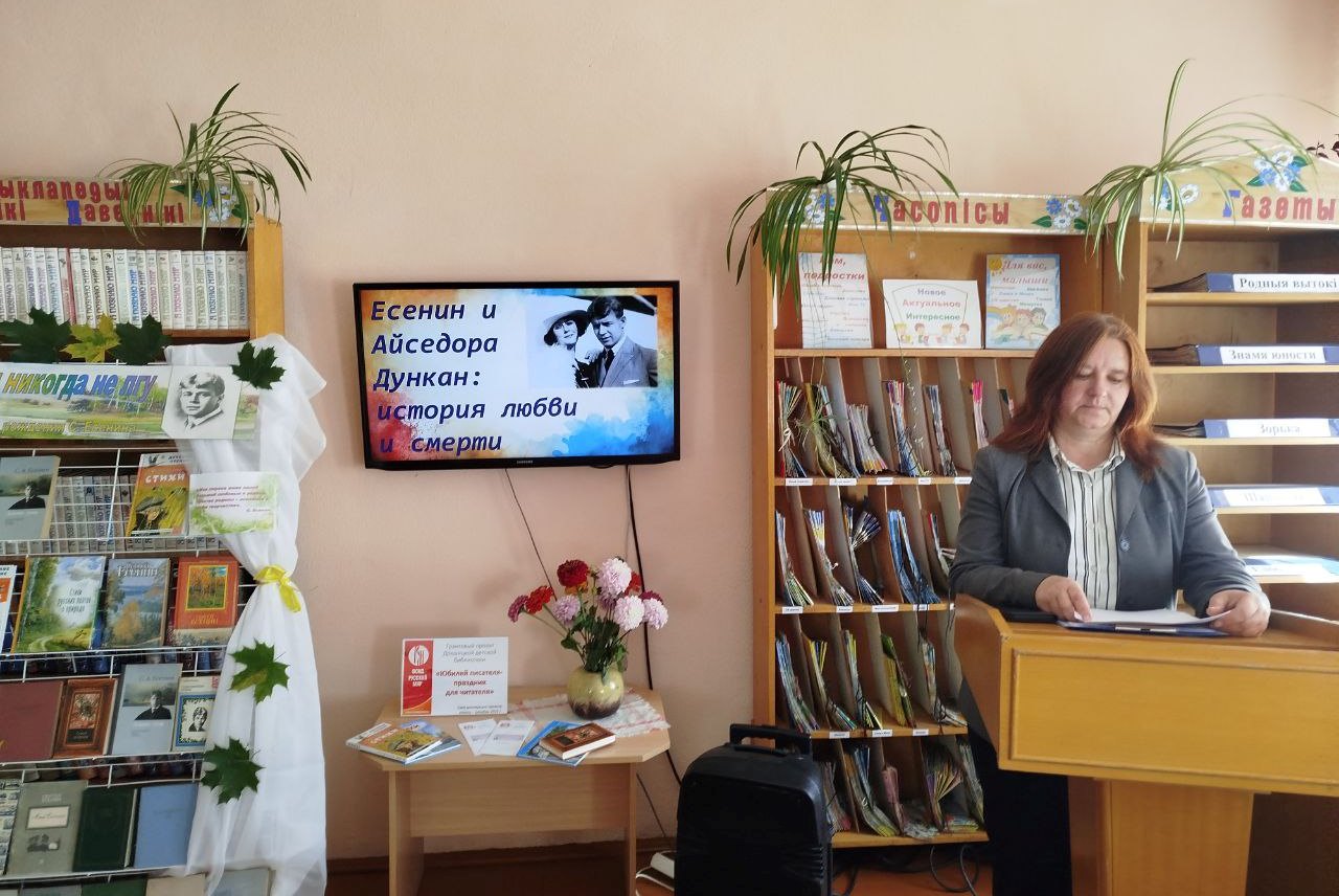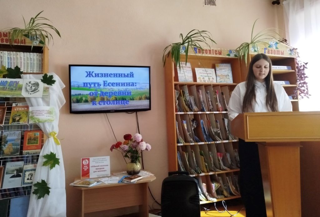 В детской библиотеке в рамках проекта «Юбилей писателя – праздник для читателя» состоялись Есенинские чтения «Певучая душа Росси», посвящённые 130-летию великого русского поэта Сергея Александровича Есенина, в котором приняли участие старшеклассники городских школ и библиотекари Докшицкой централизованной библиотечной системы.
