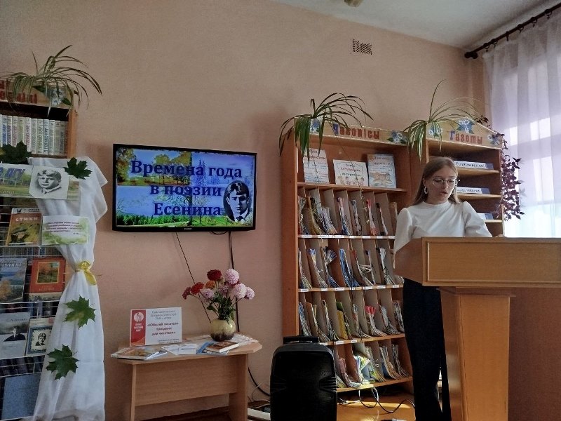 В докладе «Сергей Есенин: путь к Богу» было отмечено, что поэт пережил серьёзную эволюцию своих религиозных взглядов — от веры до глубокого религиозного пессимизма, но всё же смог найти свой путь к истине. А в докладе «Поэзия Есенина и музыка: связь слов и мелодии» говорилось о том, что есенинские стихи, полные мелодичности и ритмичности, легко ложатся на музыку, что сделало их популярными не только в литературных кругах, но и в музыкальной среде. В ходе мероприятия прозвучали песни в исполнении руководителя ансамбля народной песни и музыки «Раница» Владимира Пустошило и читателей нашей библиотеки — Чурко Арины и Кубельник Дарьи.