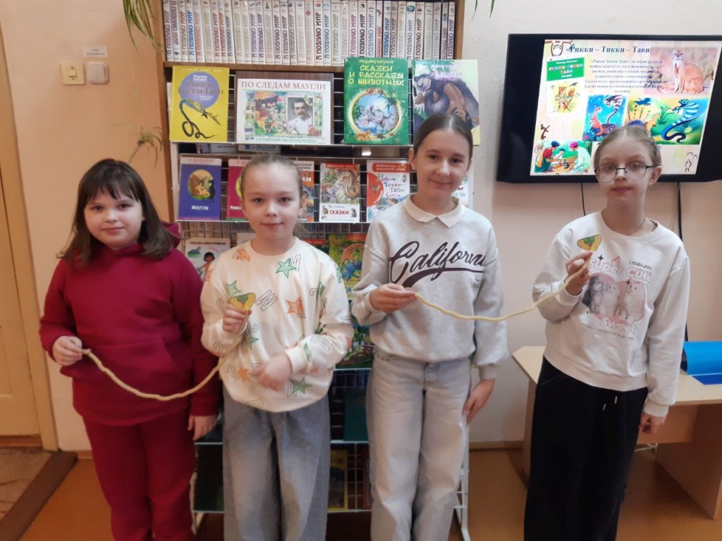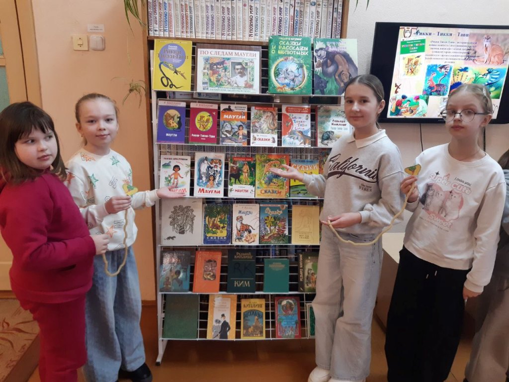 Кроме того, участники узнали о храбром мангусте Рикки-Тикки-Тави, любопытном слонёнке и ленивом верблюде, а также о множестве других ярких персонажей. В завершение мероприятия была организована выставка «По следам Маугли», где ребята могли познакомиться с книгами Киплинга.